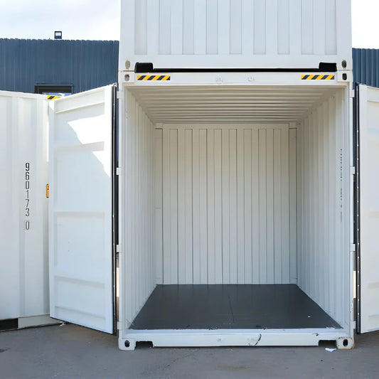 Format High Cube : Avec 2,89 m de hauteur extérieure, il offre 17 m³ de volume intérieur. La hauteur supplémentaire est idéale pour les marchandises volumineuses et les projets d'aménagement compact. C'est le choix privilégié pour les bureaux mobiles et kiosques commerciaux.